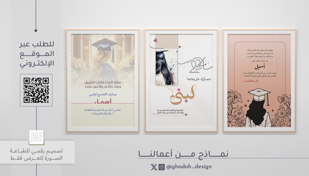 - تصميم مخصص باسم الخريج أو الناجح (بصورة أو بدون).